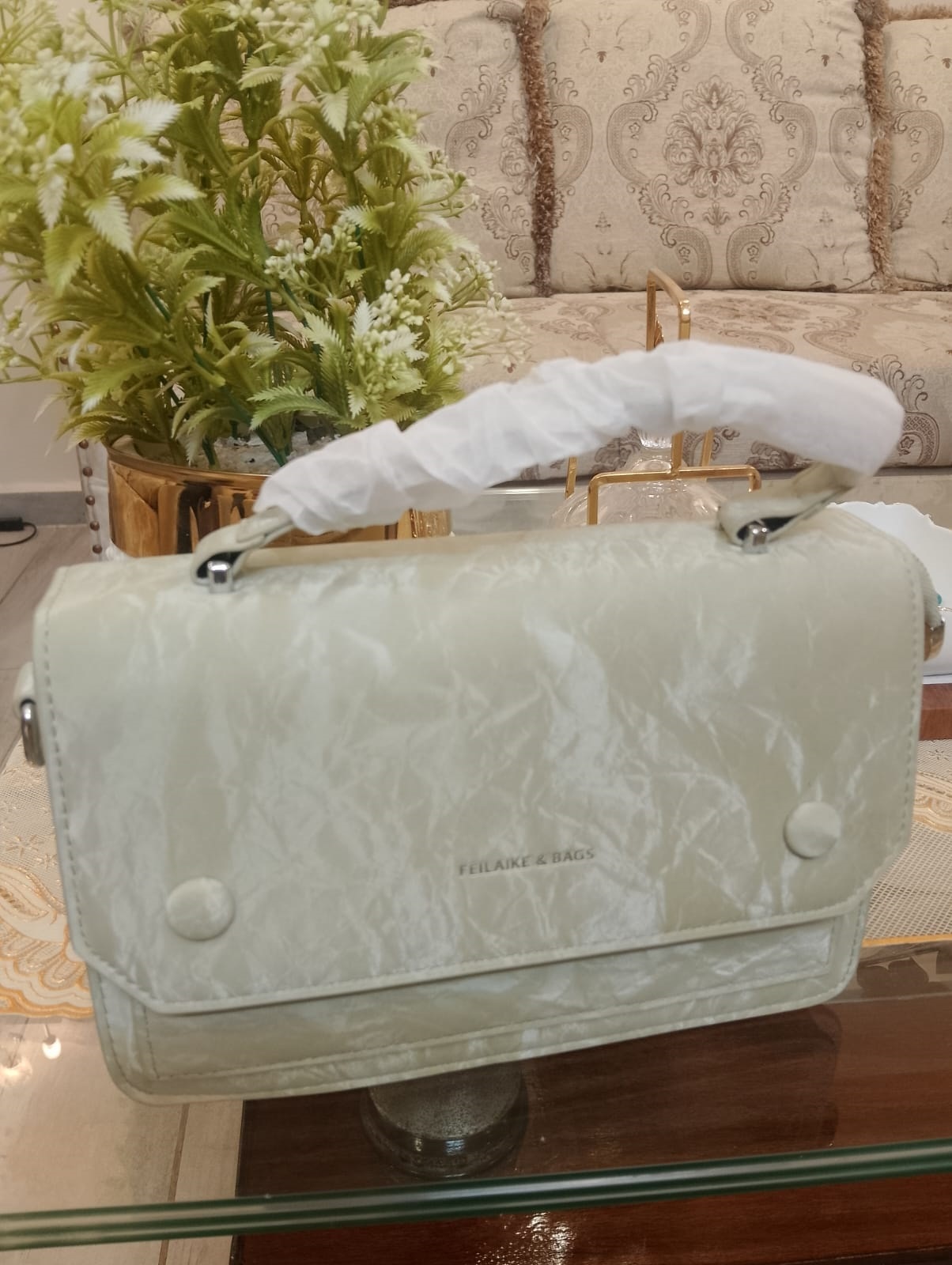 Step into the spotlight with this stunning statement piece. Featuring a unique, marble-like crinkled texture that catches the light beautifully, this bag is designed for the woman who appreciates the finer details.