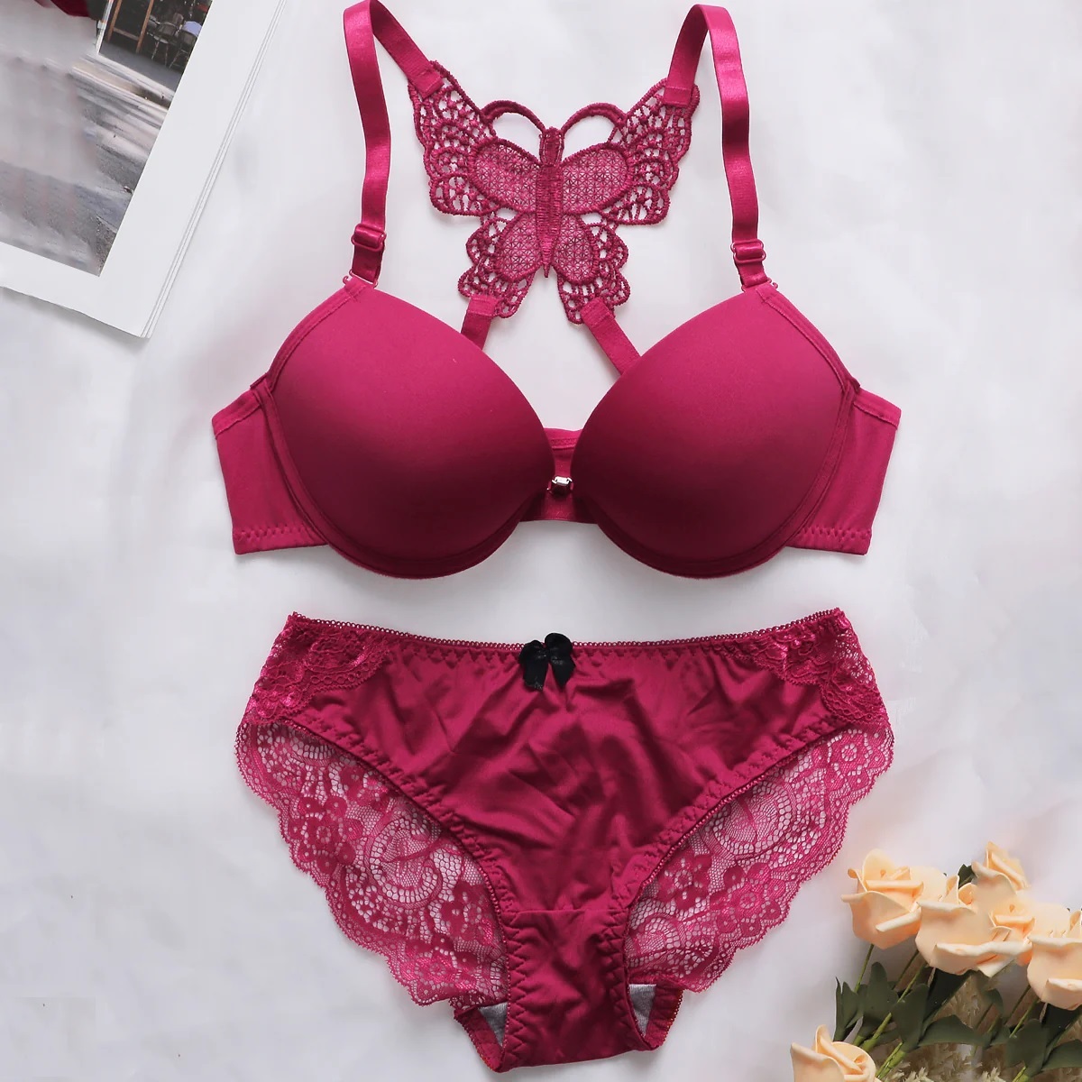 Front Open Butterfly Padded Bra Set