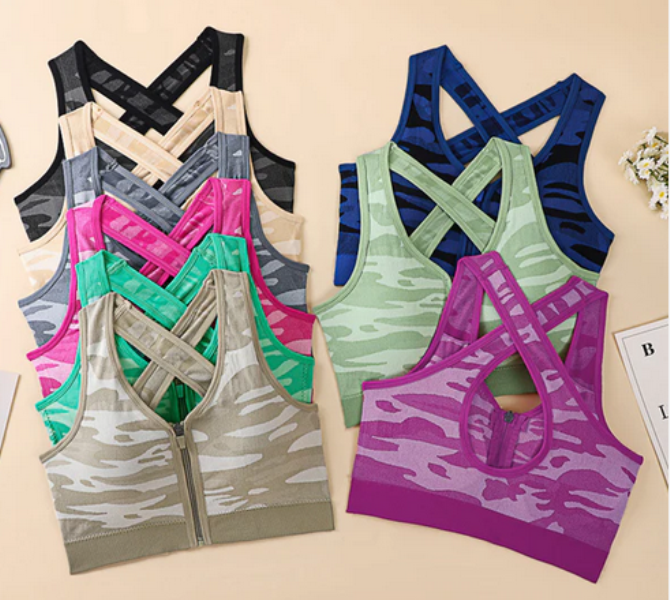 Ladies Imported Pack Of 3 Zip Design Sports Bra