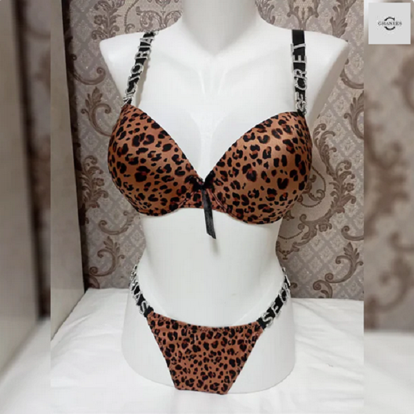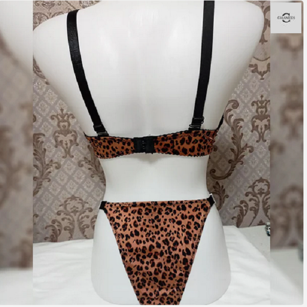 Ladies Imported Stones Design Leopard Printed Pushup Bra With T-Panty Set
